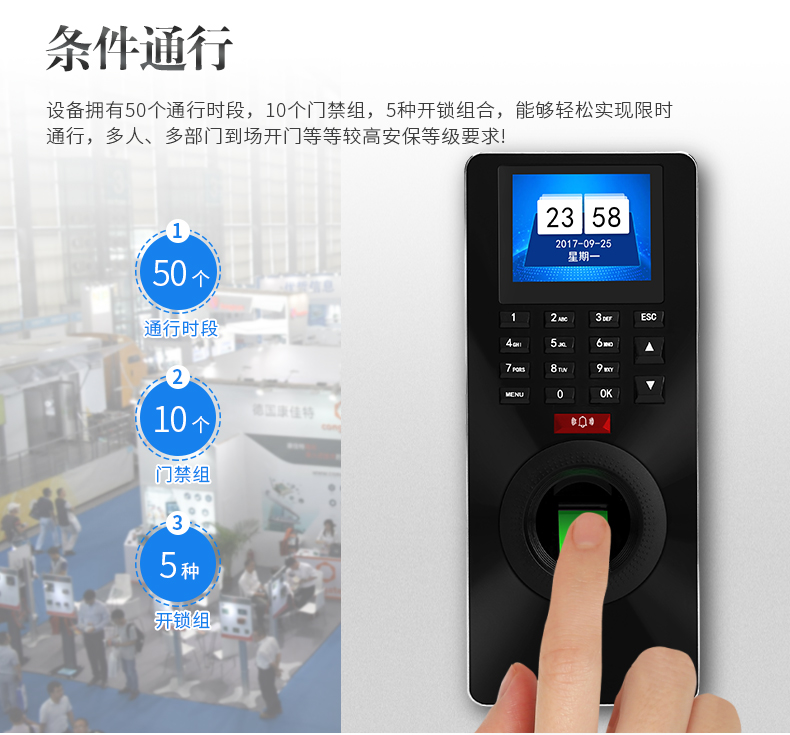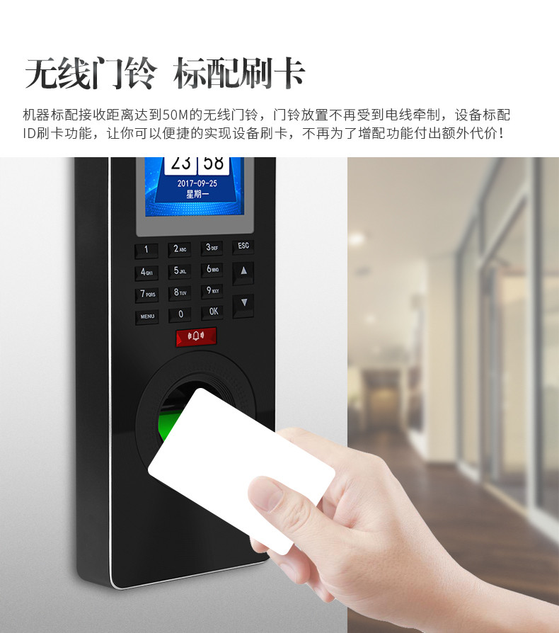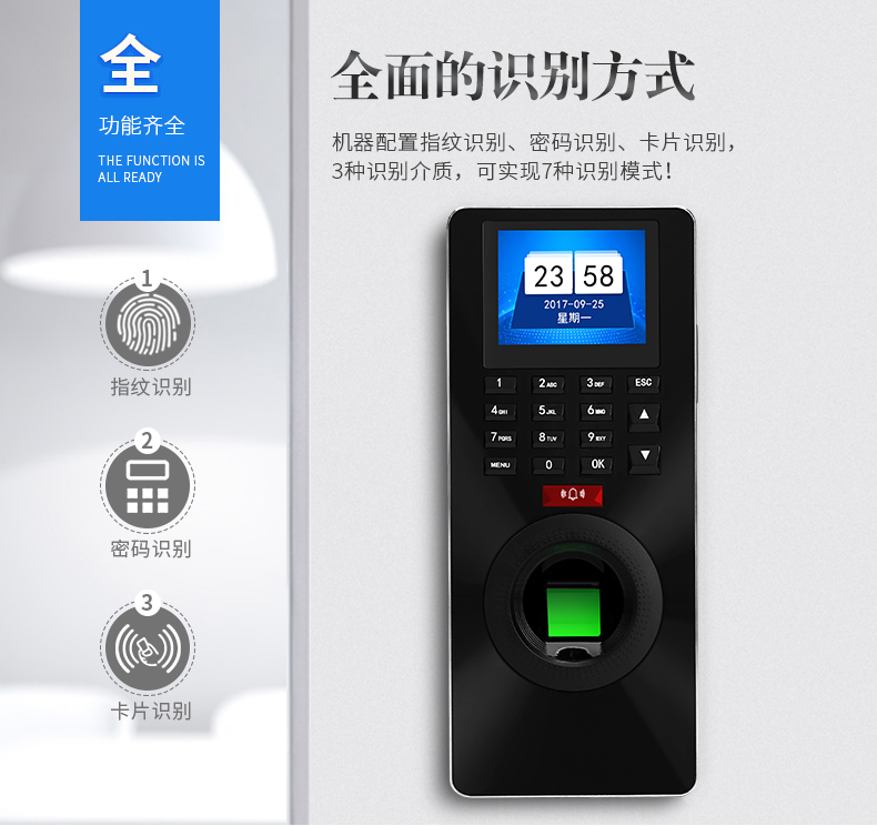 1、具有指紋、密碼、ID讀卡(IC可選)多種驗證方式;