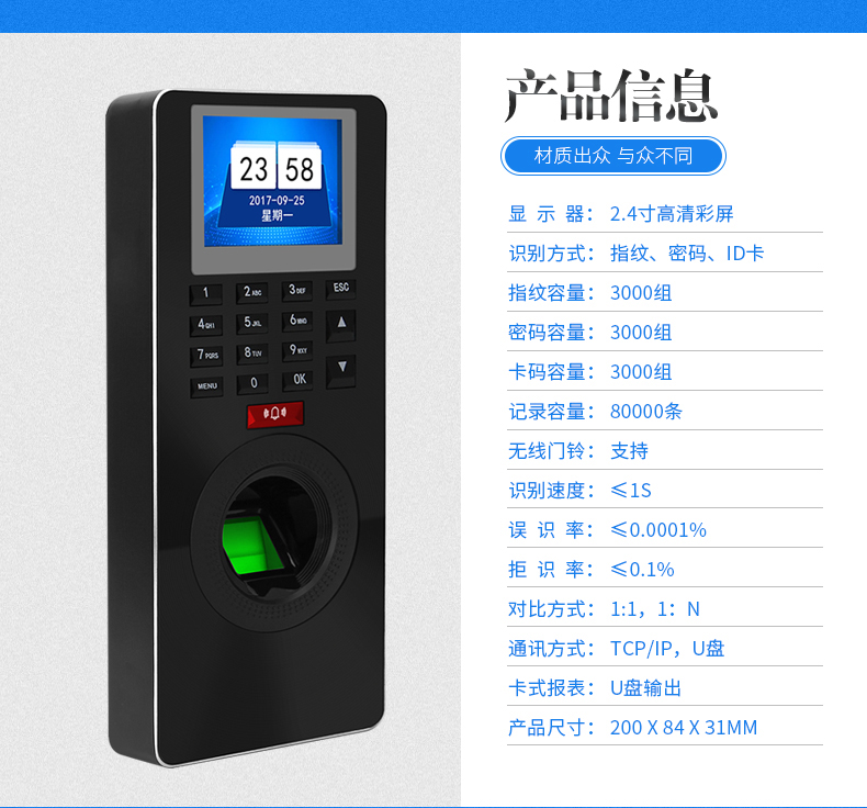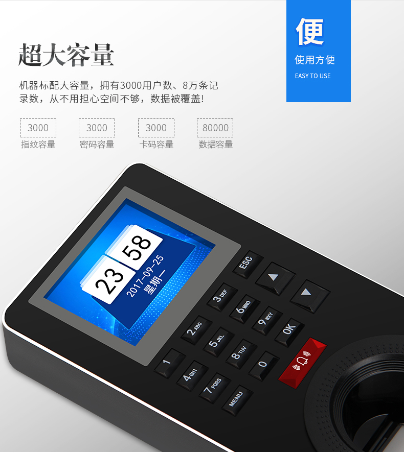 6、可存儲3000枚指紋,超大容量。